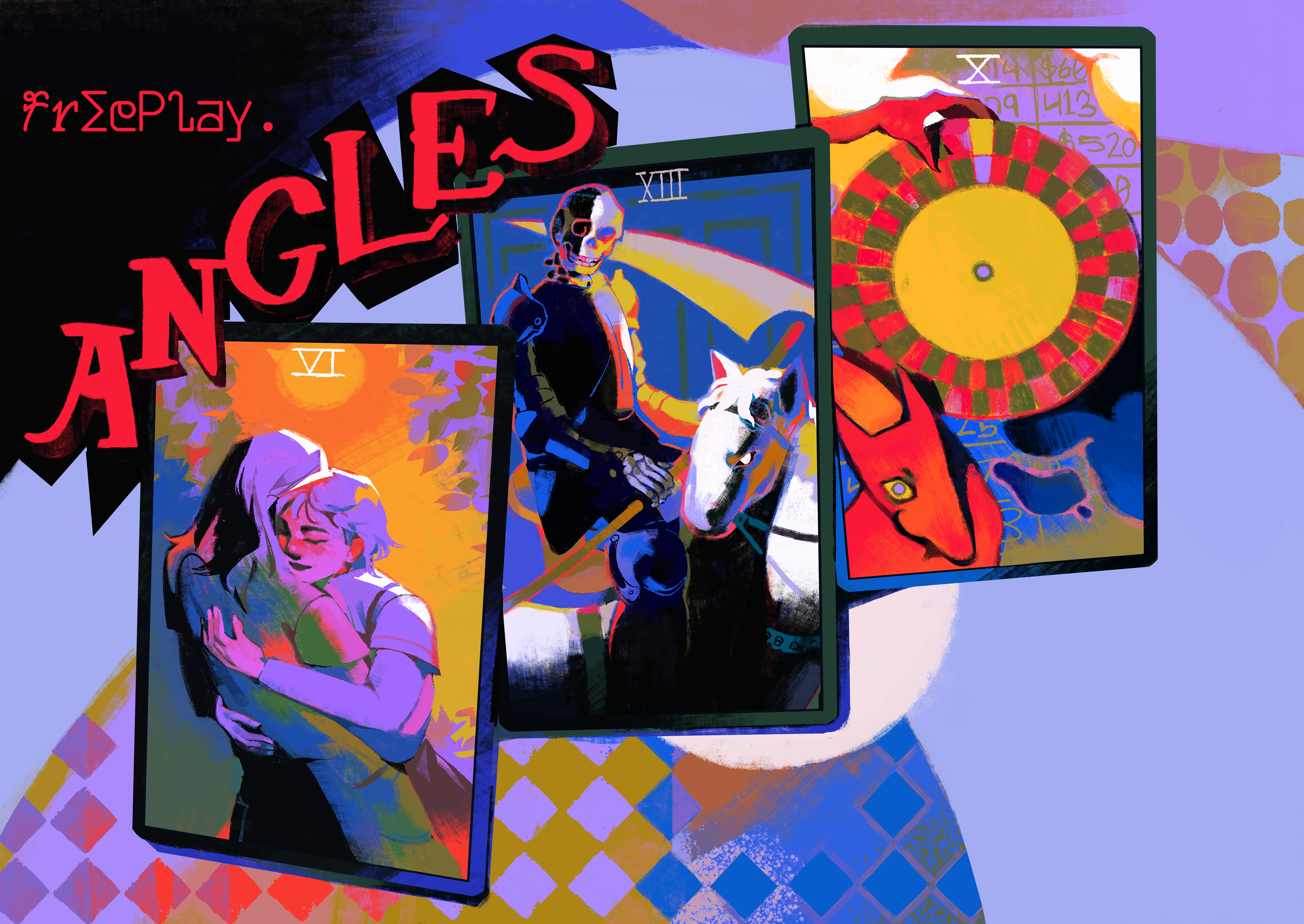 Freeplay reached out to me to do a poster design for their yearly event Angles, a series of talks about game development held over a few days. This years theme was universal constants, love, death, and taxes. The prompt I got was to incorporate a tarot spread, The Lovers, Death, and The Wheel of Fortune to represent it, it was a tonne of fun!